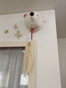 お花とリボンをつけて再登場。